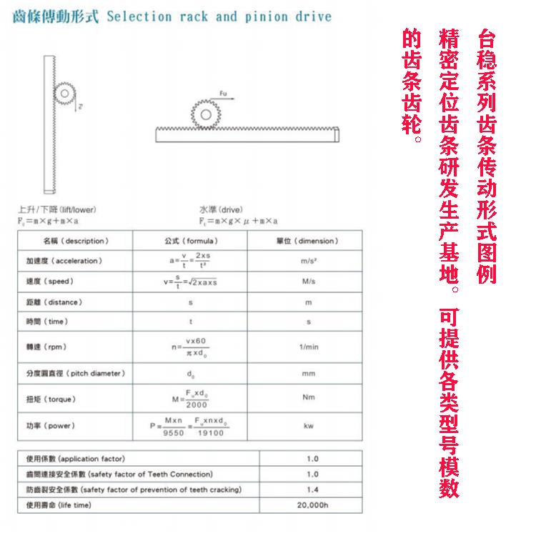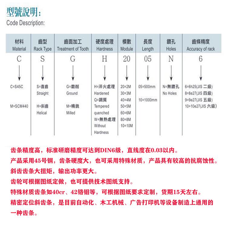 台温精机齿条和小齿轮参数的可靠定位斜齿条CHMH20-10产品参数说明:
